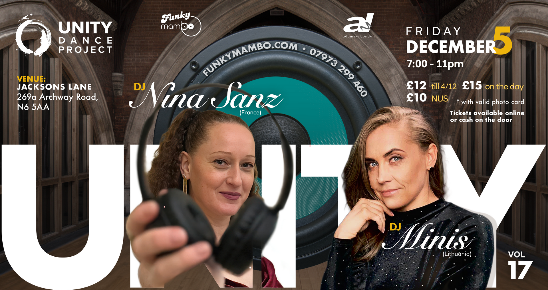 - Fri 05/12 Unity Dance Project X'mas Party @Jacksons Lane 7pm-11pm